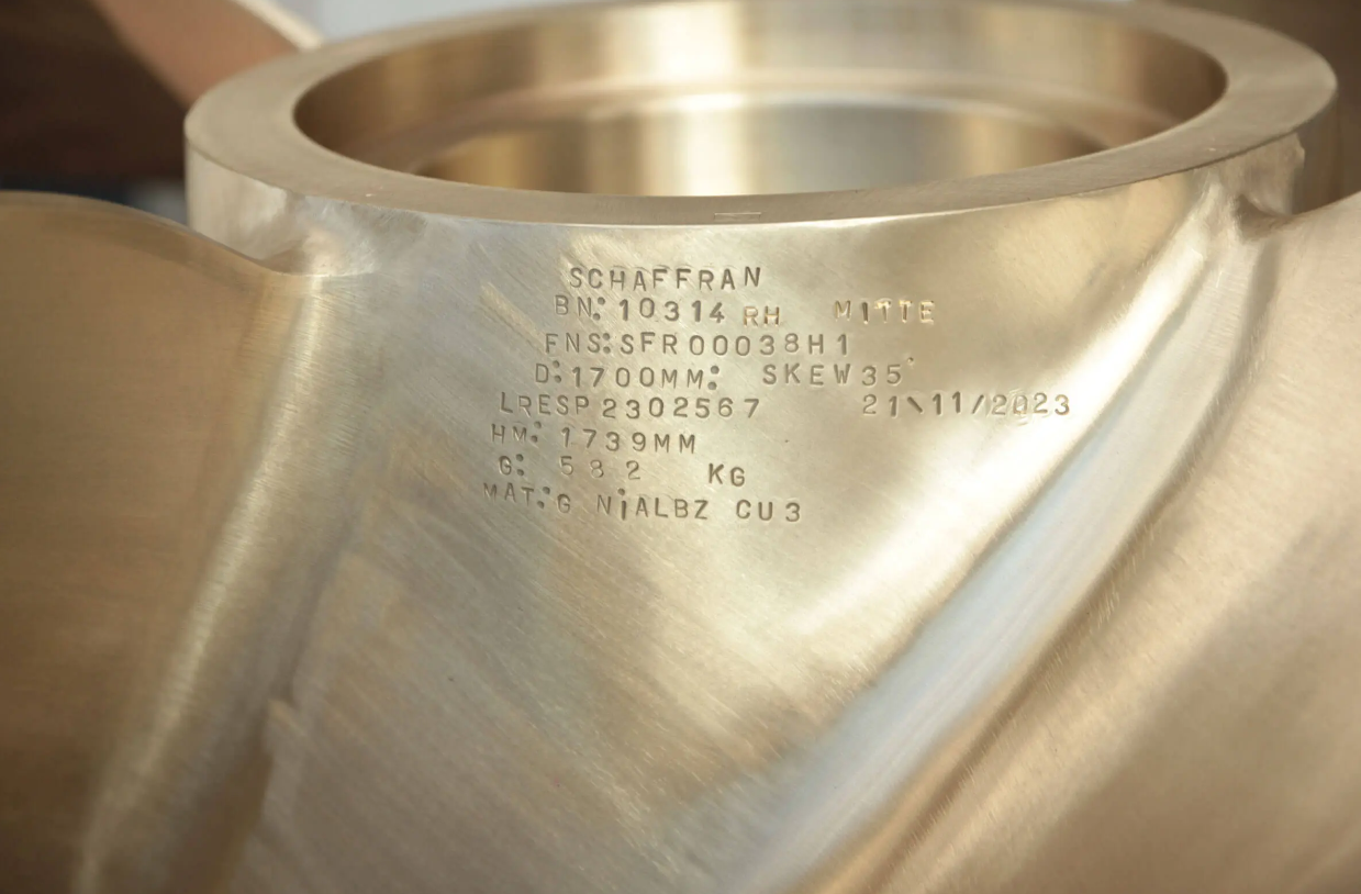 Hass notes that Schaffran makes its propellers using nickel, aluminum, and bronze alloys. “We could use stainless steel, but it’s much more complicated and expensive,” he says. The nickel aluminum bronze behaves better in the casting. It’s very seawater resistant and good for repairing.”