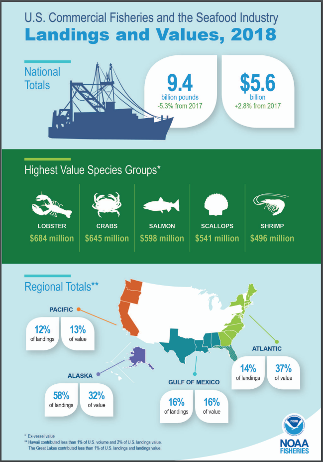 Our top species by value can be found on every coast, which exemplifies the health of our seafood industry on a national scale: