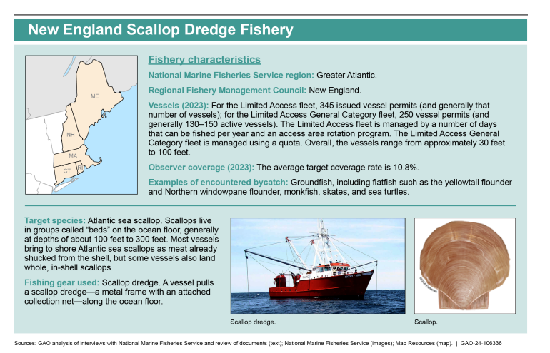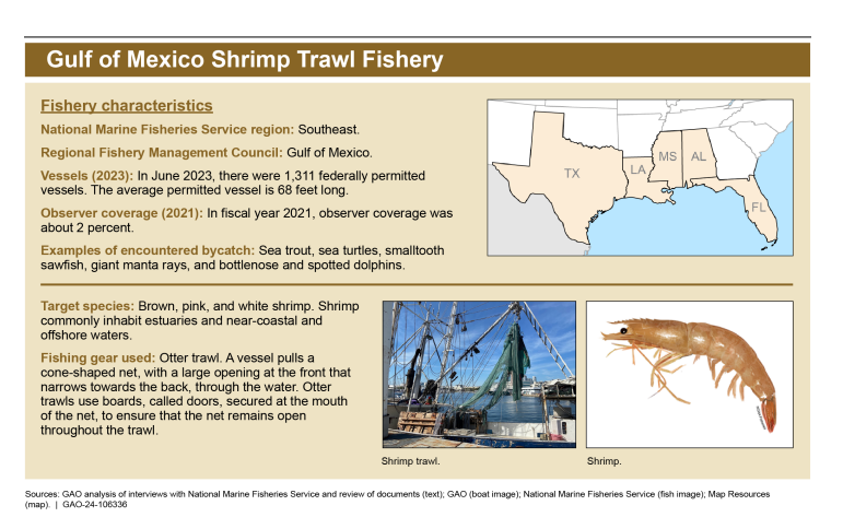 The GAO report assessed five fisheries to derive its conclusions: Bering Sea pollock trawl, Gulf of Mexico shrimp trawl, Hawaii deep-set tuna longline, New England scallop dredge, and West Coast groundfish fixed gear.