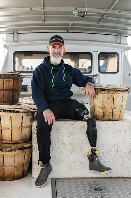 He feels blessed that the accident mostly impacted the left side of his body. “I’m right-handed and -footed and I use my right hand and right foot mostly to work my crab pots,” he says. “I’m able to work the same way on the boat that I did before the accident.”