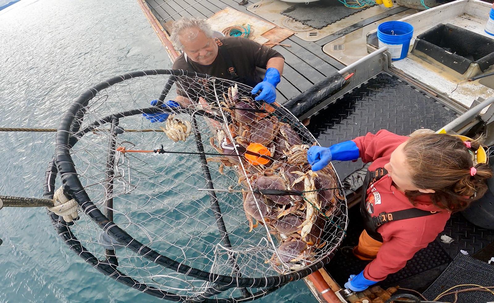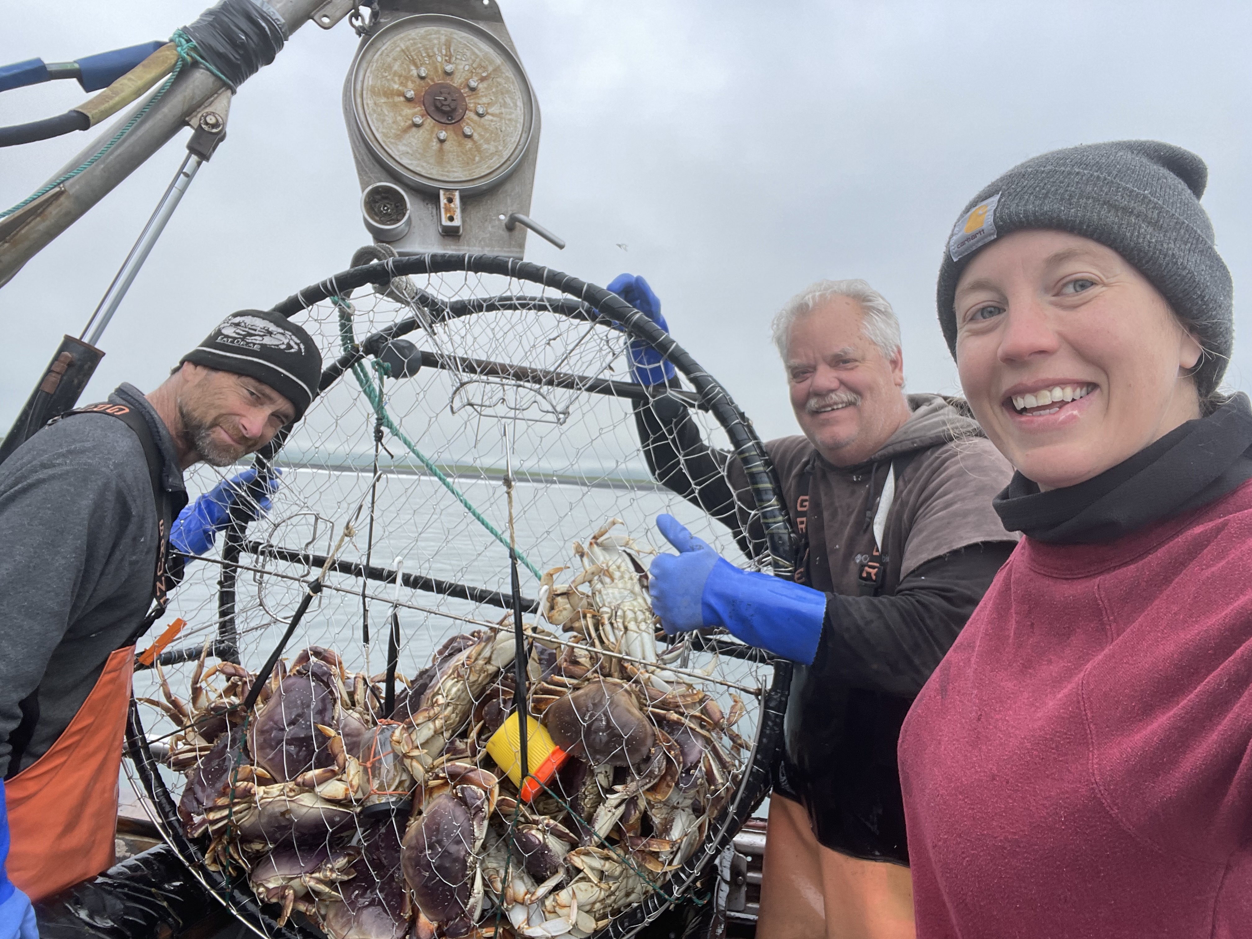 Nor did she realize how hard the work would be on her body. “We don’t have a scissor table. We dump the crabs into a box, and I’m mostly bent over sorting. I did a lot of stretches in between traps. And I used to do cold plunges in the crab tank,” she says. “That really helped with the aches and pains.”