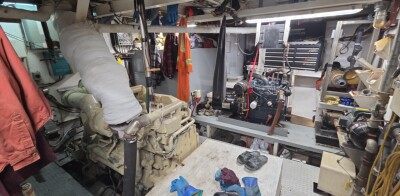 For the last four years, Payne has been figuring it out, and in the Black Eagle, he has the tool for the job. Powered by a 600-hp Cummins K19 with a Twin Disc MG516 gear at 6:1 turning a 5.5-inch stainless steel shaft and a 68x55 four-blade propeller, the vessel is engaged in a number of fisheries. “In the spring we fish crab,” says Payne, “We fish 1,200 traps, 75 to a string.” The Black Eagle has a 17-inch crab block for hauling the strings of traps with the hydraulics running off the main.