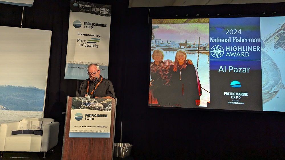 Alan (Al) Pazar is known for his versatility as a fisherman, participating in fisheries for Dungeness crab, albacore tuna, salmon, halibut, and black cod. His leadership in sustainability, research, and mentorship has made him a respected figure in the industry, passing on valuable knowledge to the next generation of fishermen. His speech focused on the core element of his life that allowed him to do this work.