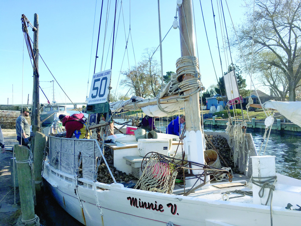 It’s still dark in Chance as the engines of the little oyster fleet come to life and boats start to slide out of the Scott’s Cove Marina. The Minnie V. lies at the end of the wharf, easily spotted by her 60-foot mast, her sails furled.