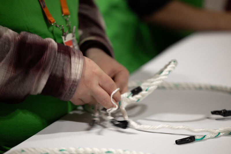 A three-tuck eye-splice without a taper made up the third challenge. Won by Jonah Rodewald from Fisheries Supply in Seattle, Rodewald secured $100 cash and advanced to the finals to compete against Cracciolo and Jackson.