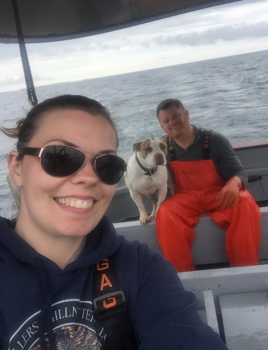 Ashley Green, Bristol May (dog), Tyler Green aboard Haven. Bristol climbed back in the checkers and into the pit while trolling. Photo submitted by Ashley Green