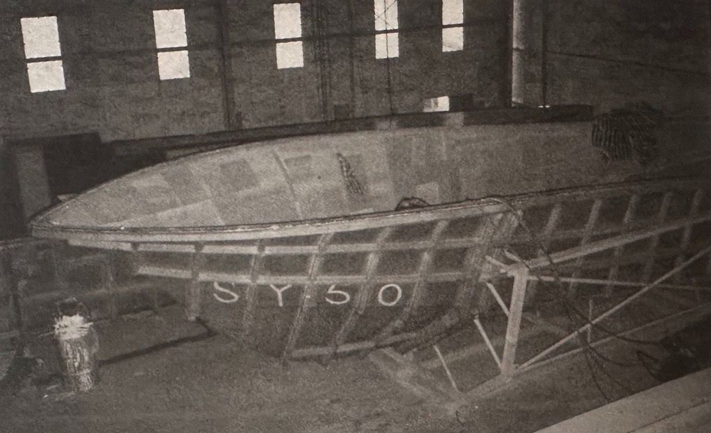 Split molds improve crew access for laminating and coring big hulls but come with their own problems. The two halves of the mold must be aligned very accurately to get the hull shape symmetrical. Look for lots of dowel pins and a good bolt pattern on the flanges that mate the half-hulls. Cross braces running sheer to sheer on uncommon, but often advisable.