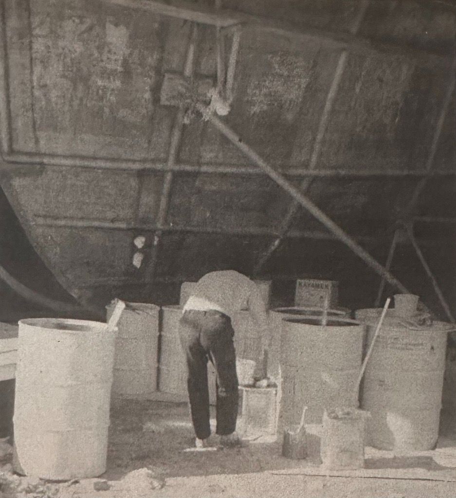Inspecting hulls and molds for finish and fairness requires a good eye- but there’s a trick that can help you out. Look down at the hull side, toward the stern. Keep your eyes level and move your whole body side to side. Try to look “around” at the curvature of the hull—state by tracking the waterline or chine and then check the shiny gelcoat above it.