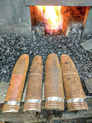 Blodgett notes that the steel is comparable to 1095 carbon steel. “He also uses spring steel. He marks each sword with a pattern of five dots to indicate what kind of steel it is,” he says.