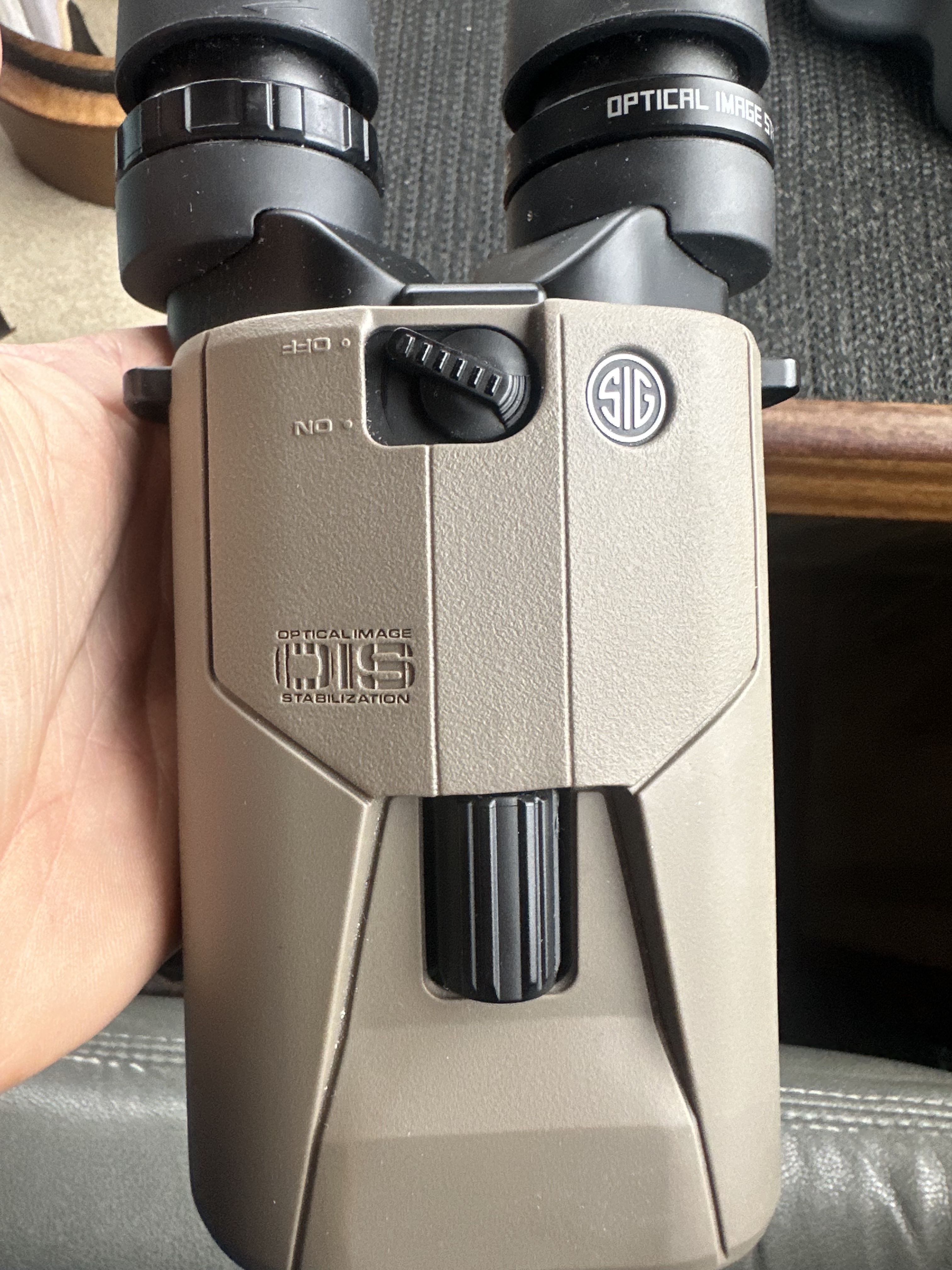 Sig Sauer has numerous options for image-stabilizing binoculars. Phillips uses the ZULU6 HDX 16X42MM binoculars, which sell on the Sig Sauer website for $1,099. Their key features—which they share with others in the Sig Sauer line—include two modes of optical image stabilization, HDX-Glass to enhance light transmission, a scan mode, and a target mode. The target mode is designed specifically for locking onto a target and, according to the Sig Sauer product description, can increase stability up to 50 percent.