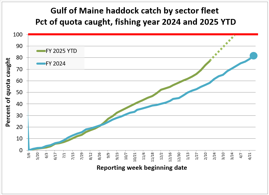 "We were, for instance, four weeks ago, on track at the current quota level to be out of Gulf of Maine haddock quota right around the end of this year,” said Hank Soule, manager of the Sustainable Harvest Sector. New England sectors are self-managed groups of commercial fishing vessels holding limited access permits for Northeast multispecies (groundfish), including haddock.