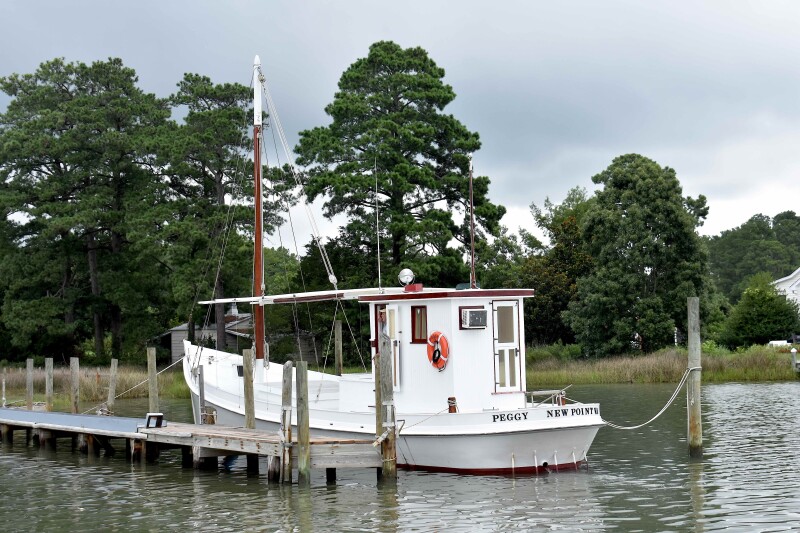 The Burroughs family owned the Peggy for 36 years before selling her in 1961 to 23-year-old Edward Grinnell. Grinnell worked the boat in the bay’s pound net and crab dredge fishery until 2001, when he sold her to Kim and Gretchen Granberry.