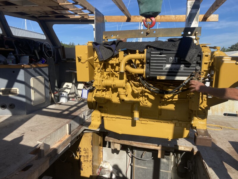 Moving forward, the team left the 4-inch stainless shaft in place, as well the Twin Disc 3.5:1 gear. “We sent the engine, a Cat 3406E, to Dennis Welding and Marine on Beals Island [Maine],” says Molyneaux. “They totally rebuilt it, new sleeves and all that.”