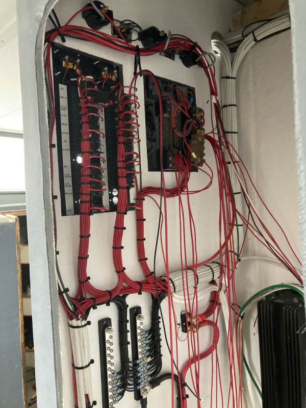“We got the engine back in on September 1st,” says Molyneaux. “We’ve got all new wiring, and switches. Looks great, everything labeled, so you know what it is. Robert Kramp of Kramp Electronics rewired the entire boat from the batteries up, and set up all the electronics,” says Molyneaux.