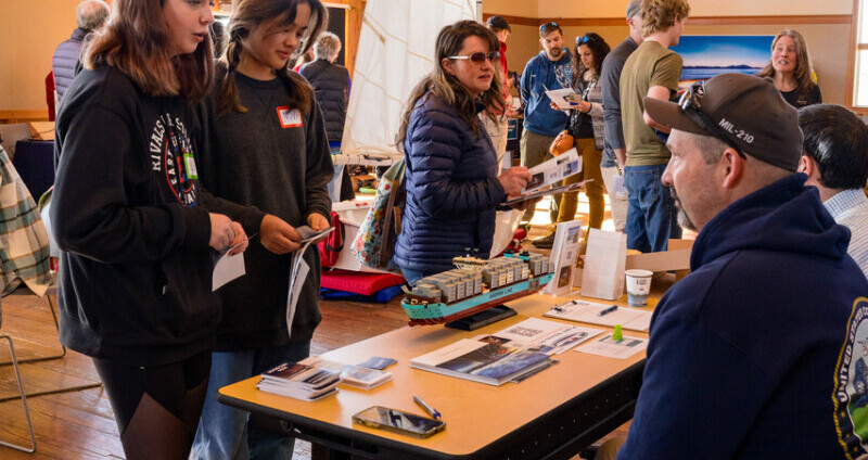 It was in the upstairs, large multipurpose room that the NWMC recently held its first Maritime Career Fair. I, as a volunteer, greeted people as they entered the hall. Attendance was lighter than hoped for, but the room with exhibitors was steadily busy and many people got easy opportunities to talk with people in the industry like Puget Sound Pilots and the Coast Guard and Star Marine, a tug-and-barge operator from nearby Port Hadlock.