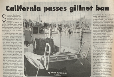 In 1990 California voters approved a state constitutional amendment to ban inshore gillnets, a measure pushed by a coalition of recreational fishermen and environmental activists. Sansom said that victory, and the rise of activist recreational groups like the Coastal Conservation Association, lit the fuse for what happened next.