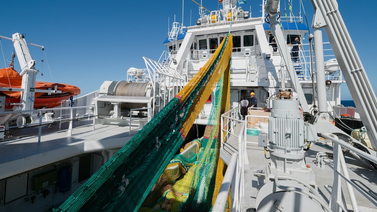 The trawler’s deck is equipped with a comprehensive system supplied by Ibercisa, including three 200Kw, 85,980-pound trawl winches and various other winches for multiple functions, such as net retrieval and anchoring.