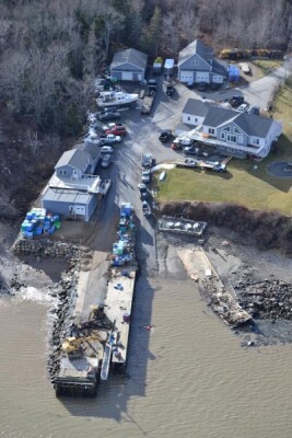 Milbridge, Maine, lost two important wharfs, Chipman’s Wharf and Jordan Pier. While Jordan is a public pier, Chipman’s Wharf is a private company that buys lobsters, scallops, and other seafood from local boats, and runs a fish market and gift shop.