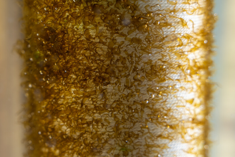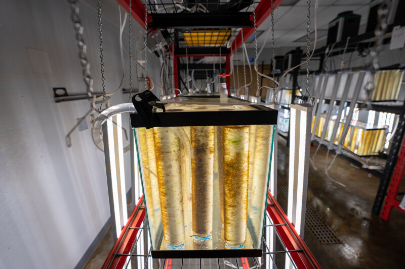 Instead, you’ll see a series of 2-by-15-inch plastic pipe wrapped with 200 feet of nylon twine and inoculated with kelp spore solution. The string is monitored and controlled with temperature and light until the plants germinate and are ready to be shipped to farmers or test sites at approximately six weeks.