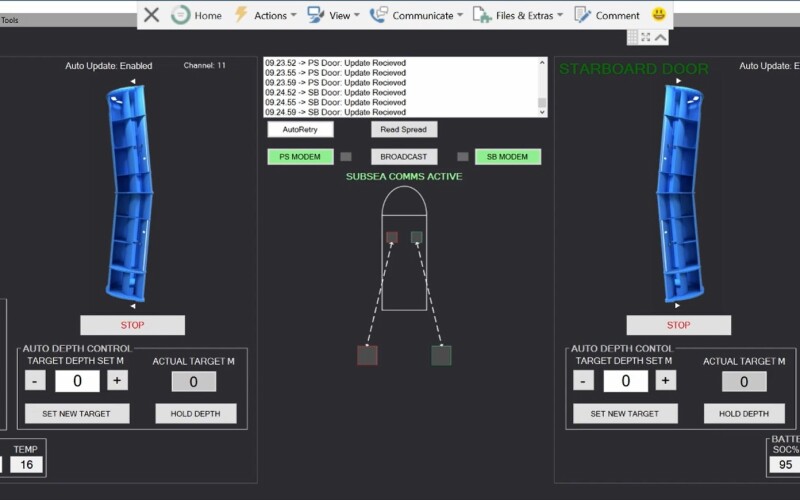 Hansson adds that when trawling in manual mode, and not adjusting the foils very much, the batteries still had 33 percent charge after 52 hours. “In combination manual and auto-depth we used 50 percent of the capacity in 30 hours, and it’s easy to recharge the doors when bringing in the catch.”