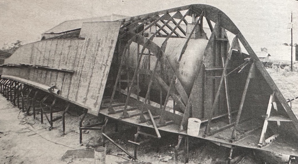 Understandably, installing these large tanks required some modification in the traditional Gulf shrimper layout. The forepeak area, normally used for net and gear storage, shrank considerably and the remainder was used to house a fresh water tank. The fish hold, too, had to be shortened by one frame's worth because of the mounting system on the forward tank.