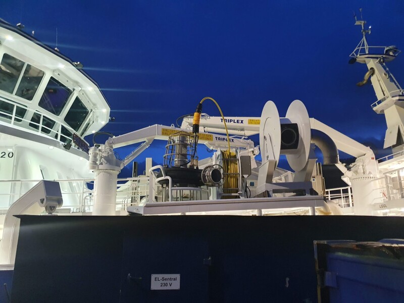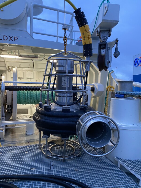 The pumps use an ROV-type (remote-operated vehicle) cable to supply power and communication, and the ROV cable can also be used to lift the pump, Fagertun explains. “But so far, most customers lift it with an additional wire from a crane,” he says. He adds that the communications wiring in the ROV cable allows for monitoring of depth, temperature, pump pressure, and other variables.