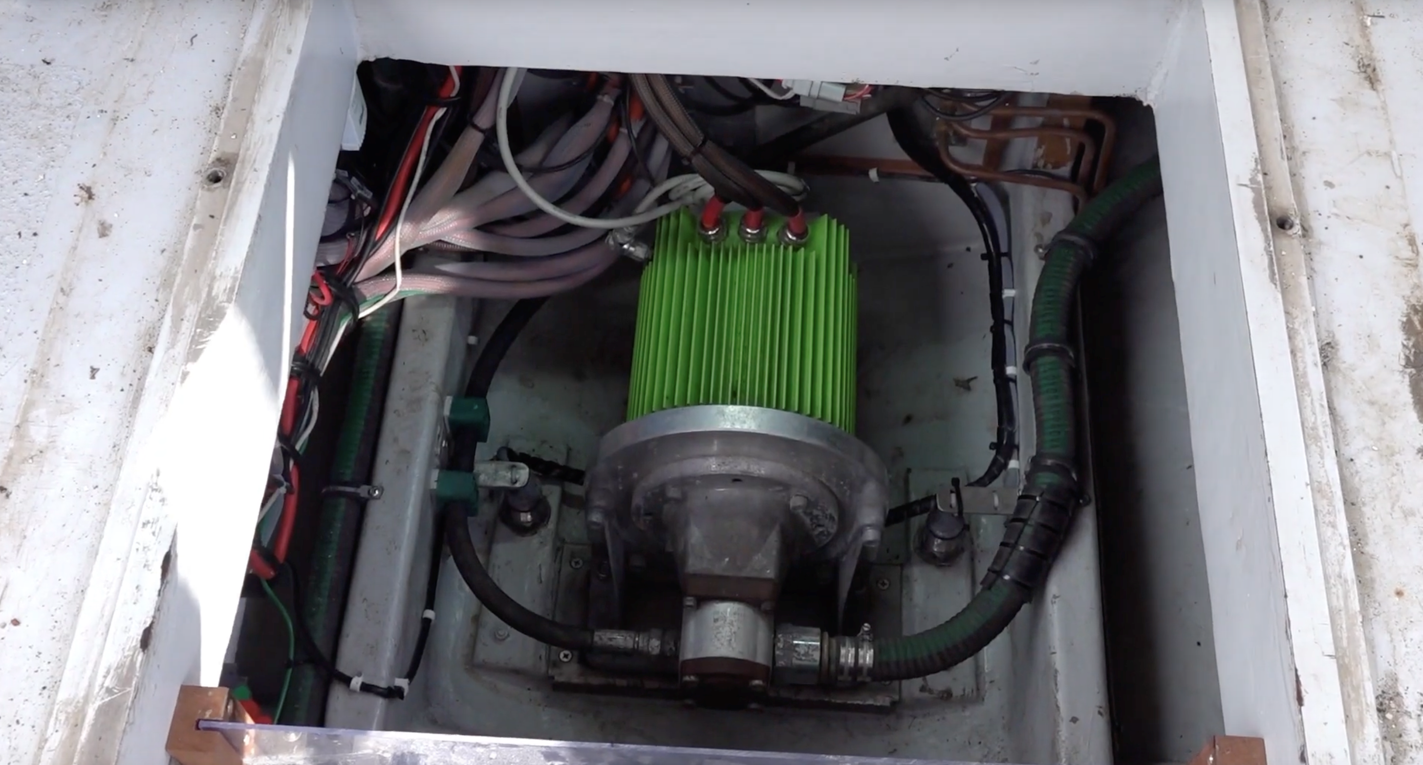Unlike many electric prototypes, the Lorna Jean has no backup power. “The batteries power everything on the boat,” says Unkles. “Above 48 volts is considered lethal, but with 48 I can power a 20kW motor, which is plenty.” Unkles put a Fischer Panda Aziprop 20 kW 1200 rpm pod drive on the Lorna Jean. “It’s a German company, very reputable. I chose the pod drive to leave more room for the batteries,” he says. “It comes with a control box to invert the voltage from 48vdc to 48vac 3 phase. This allows the 6 x 70mm2 cabling to carry the amps needed to power the motor. With the self-adjusting propeller, I think what I have is easily comparable to a 40-hp diesel.”