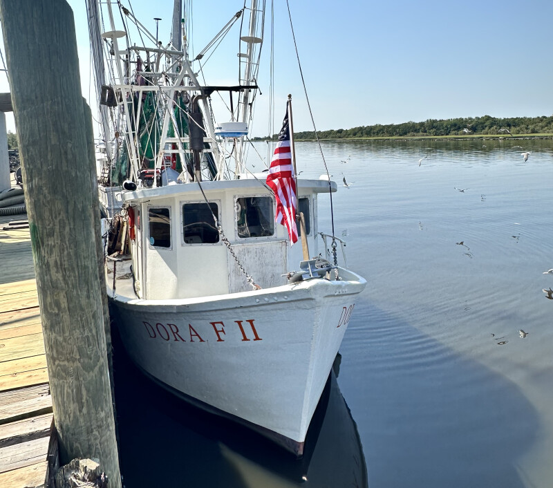 City Market sells seafood to the nearby Sea Island Resort, and Owens recalls that when the resort wanted a boat to take people out and show them the local waters, he recommended the Dora F. "They did that for about three years, until she sank, and now they do it with the Dora F II."
