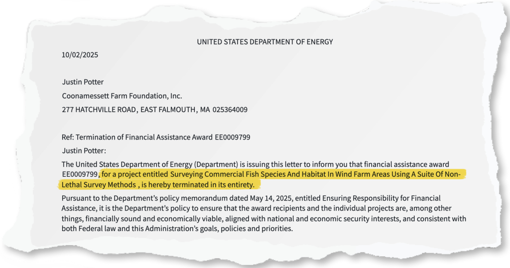 The canceled study, which would have employed New Bedford fishermen, is one casualty of $7.5 billion in clean-energy funding cuts in mostly Democrat-led states, announced last week by the Department of Energy.