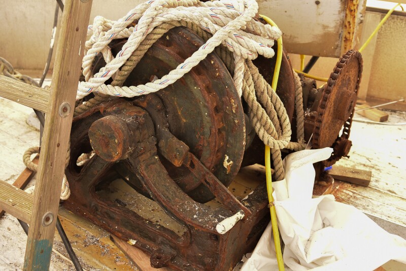 Removing the last piece of her original gear — her rusty old windlass — was a momentous change.