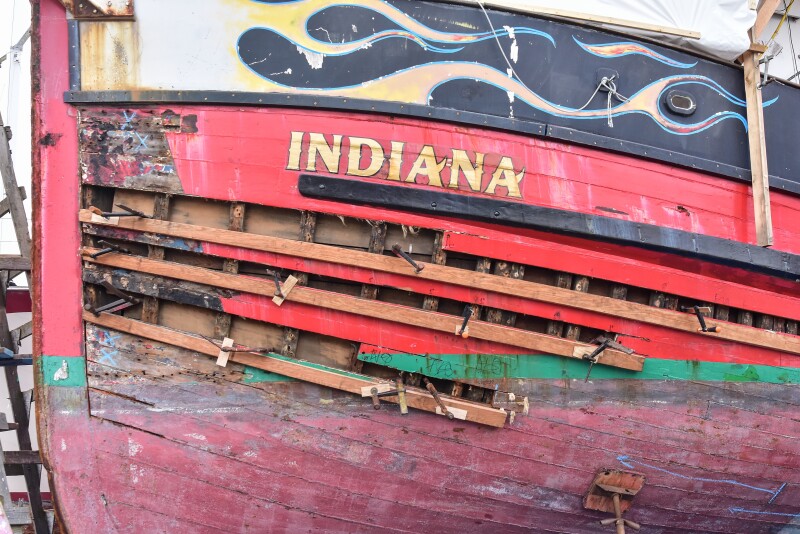 One that checks all of those boxes was the bright red 56-foot seiner Indiana, built in 1917, in one fishery or another all of her 104 years, that was nearly derelict when Marty McCallum bought her 33 years ago. He’s her fourth owner. The second-generation commercial fisherman knew what to look for in old wooden boats, saw potential, and he could afford her.