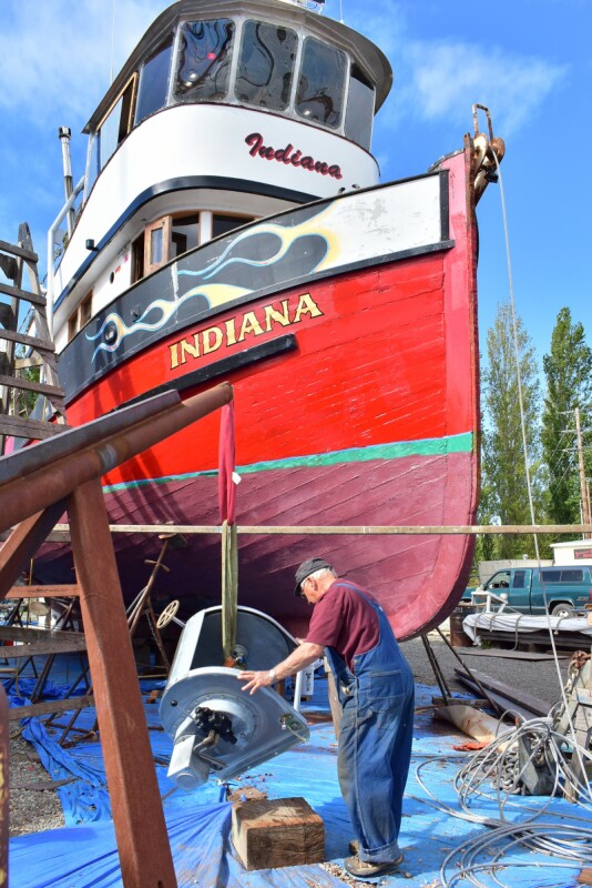 The Indiana was built in Tacoma almost entirely of “beautiful old-growth fir,” her skipper said, though he isn’t sure which yard — information lost in the mists of time along with her designer’s name, though he knows she was first fished by one Tony Anaich.