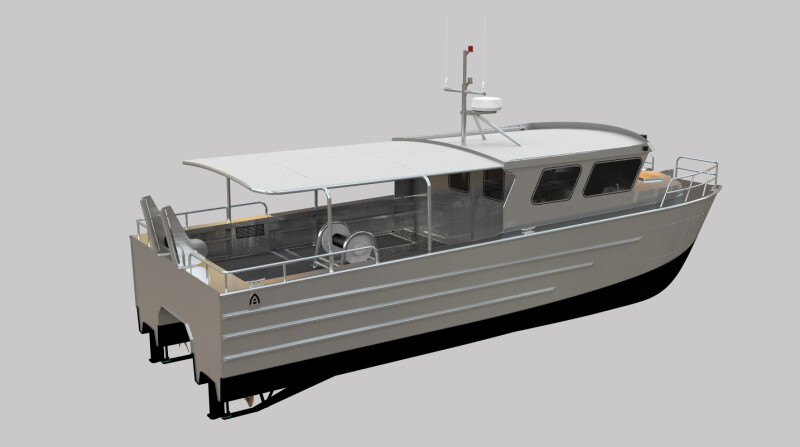 The four Super Alia (“alia” means “catamaran” in Samoan) designs are identical 38’ x14’ semidisplacement catamarans, designed by ACI Boats and Coastwise Marine Design. They will be constructed with 5086 aluminum hull skins, and 5052 aluminum interior transverse frames, including ACI Boats’ signature self-bailing decks, a forward-leaning, full-width cabin with cuddy, galley, and head compartment.