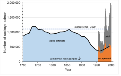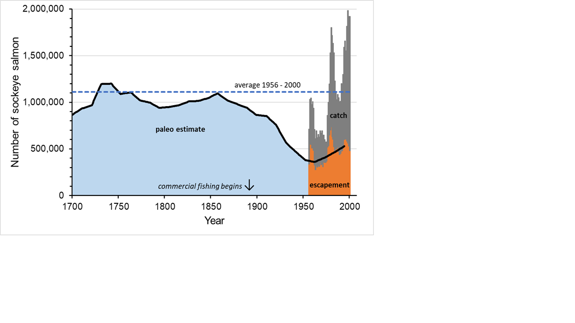 These prehistorical reconstructions of sockeye salmon from the Wood River and other salmon systems throughout Bristol Bay show that the sustained abundance of salmon prior to the development of commercial fisheries was comparable to the abundance (the sum of catch and escapement) observed over the last few decades.